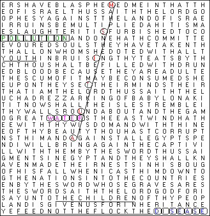 This page 10a on the King James Bible Code discusses research I did on an English Bible code in the King James version Bible, on Autism in Children, a disease which has shown a rapid increase in numbers in recent years (now about .7 % in the U.S.). Autism can result in disabling problems with learning, speaking, and communication in children. Its cause is not known, but is believed to be a combination of environmental toxins affecting the brain's development, and possibly there may be a genetic factor also.
