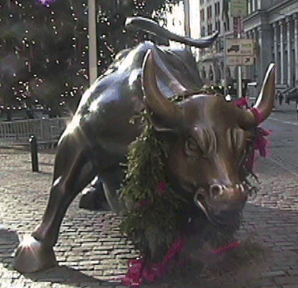 Above: The bronze bull statue near Wall Street. Note this brings to mind the Egyptian Goddess Isis, who had cow horns.