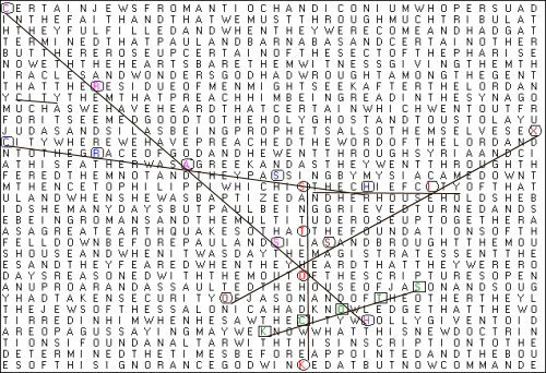 The next matrix is New Testament at Acts 14:19 - 17:30, and Row Splitting was on auto. It contains these search words: